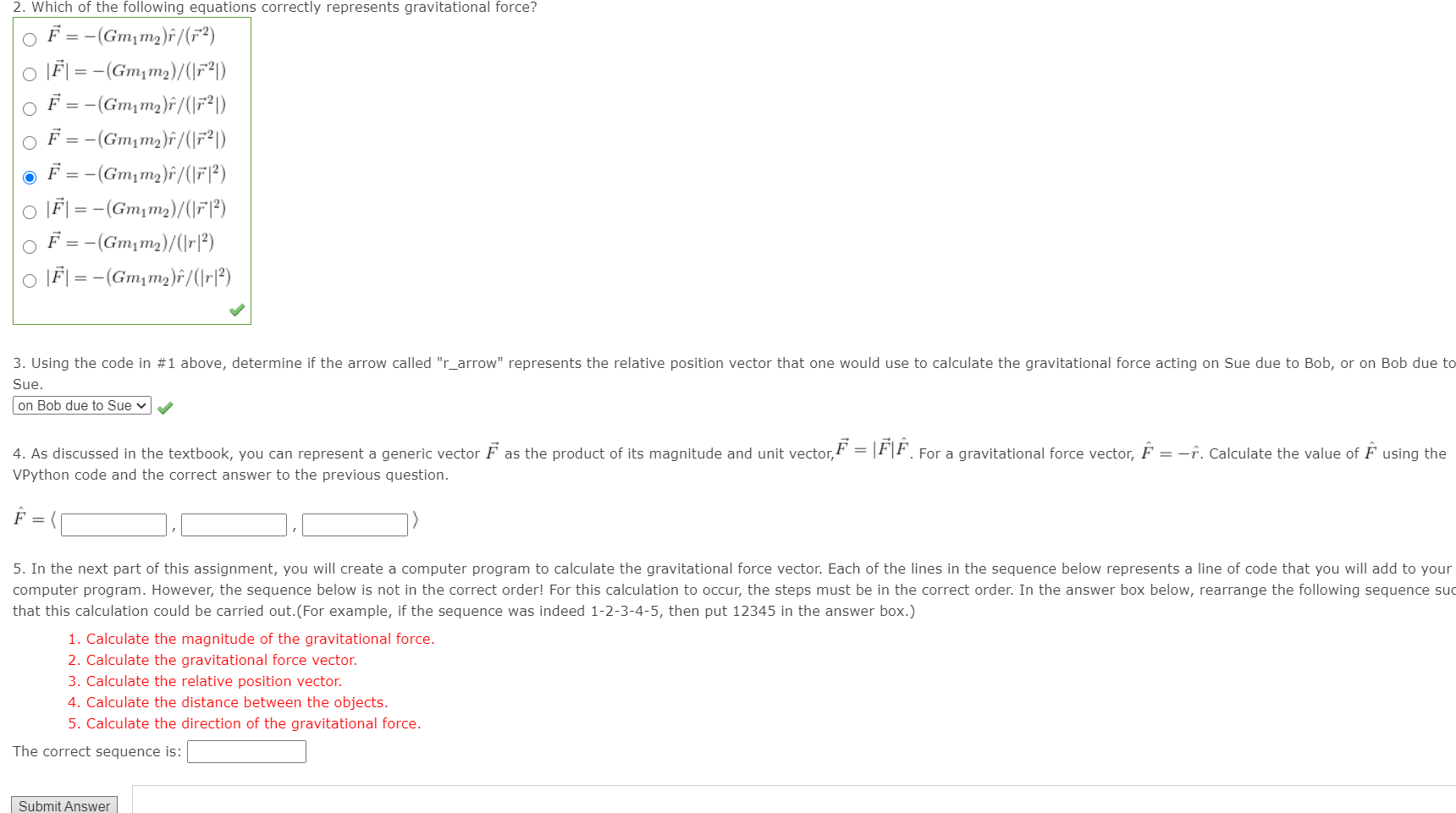 2 Which of the Following Equations Correctly Represents Gravitational Force